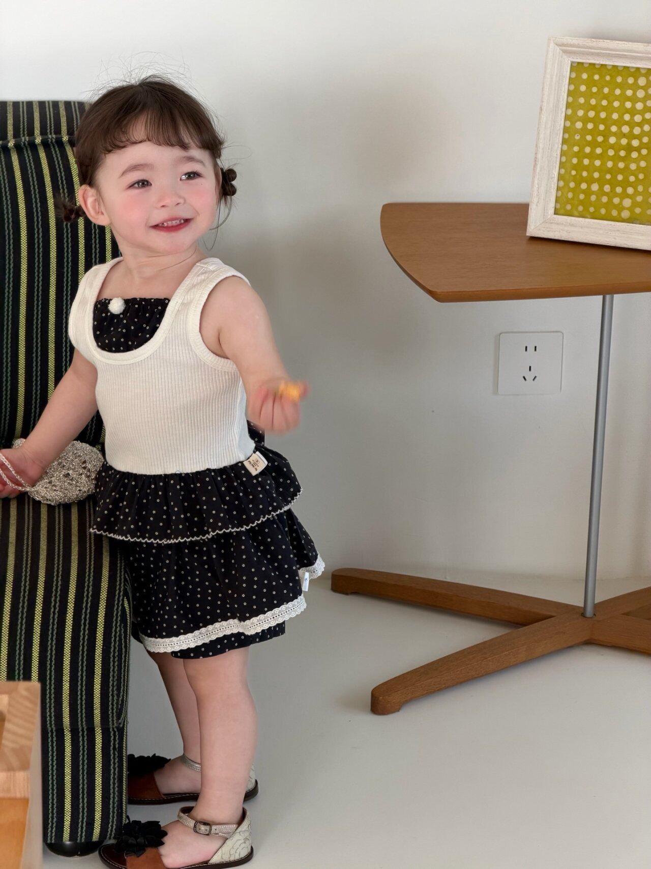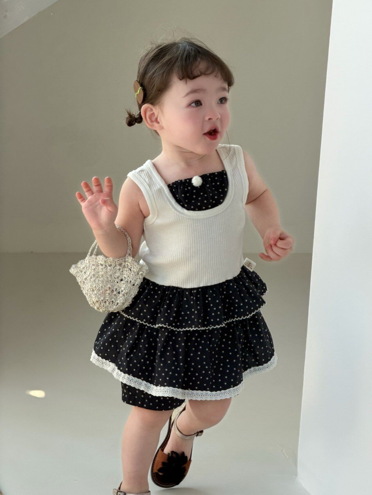 【予約❤︎送料無料】My daughter / Black Mood Dot Top & Bottom Set