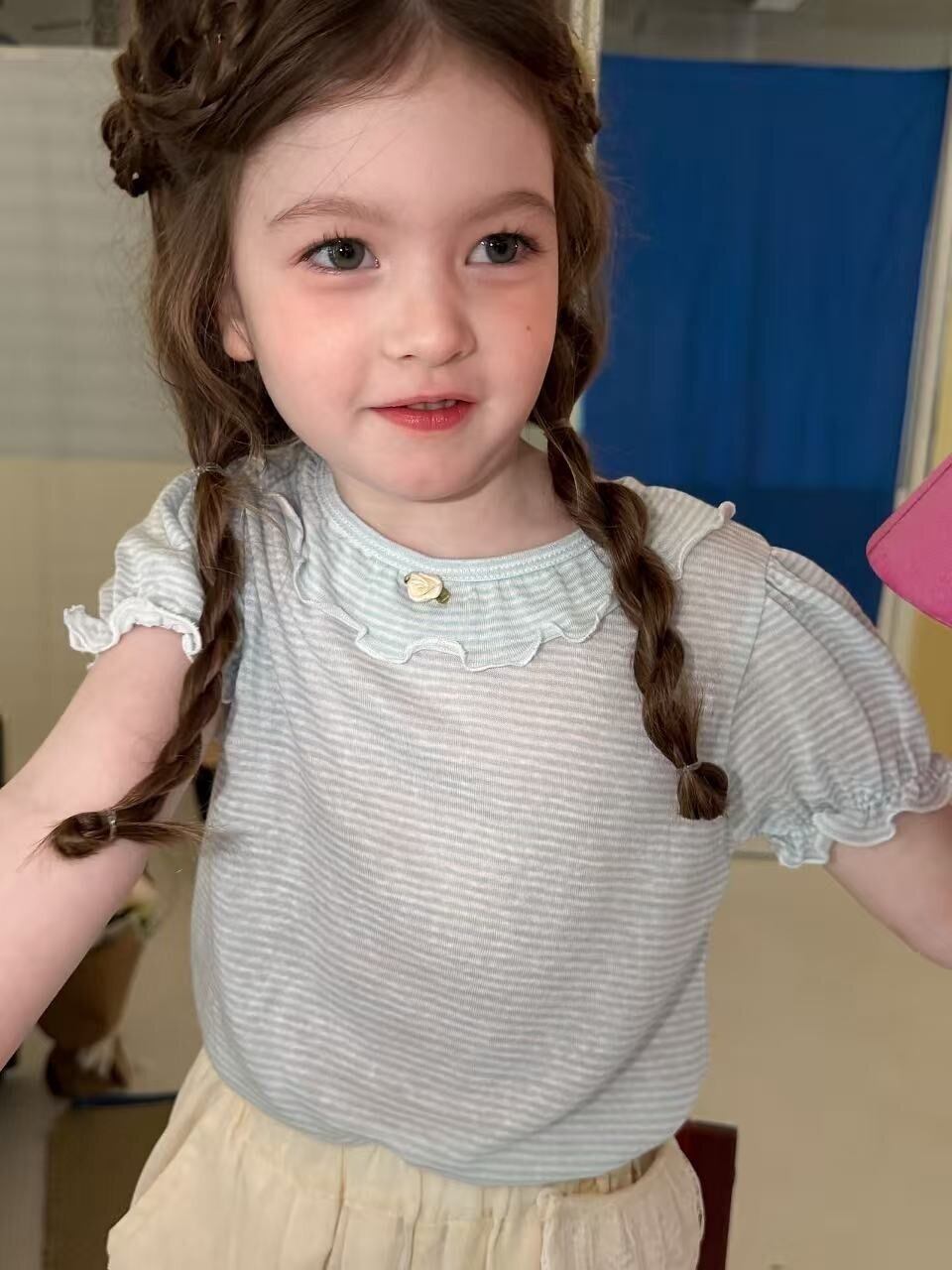 【予約❤︎送料無料】aiai / Frill Neck Striped Tee