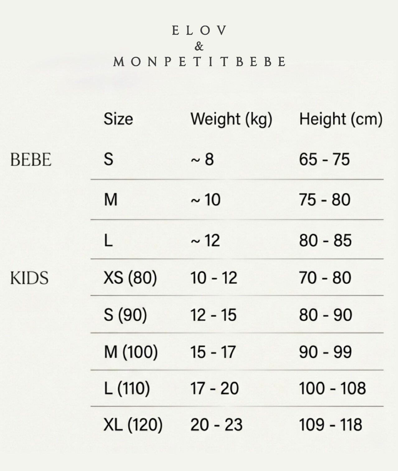 XS(80), S(90), M(100), L(110), XL(120)