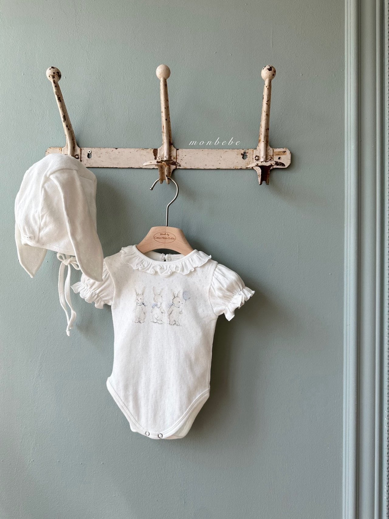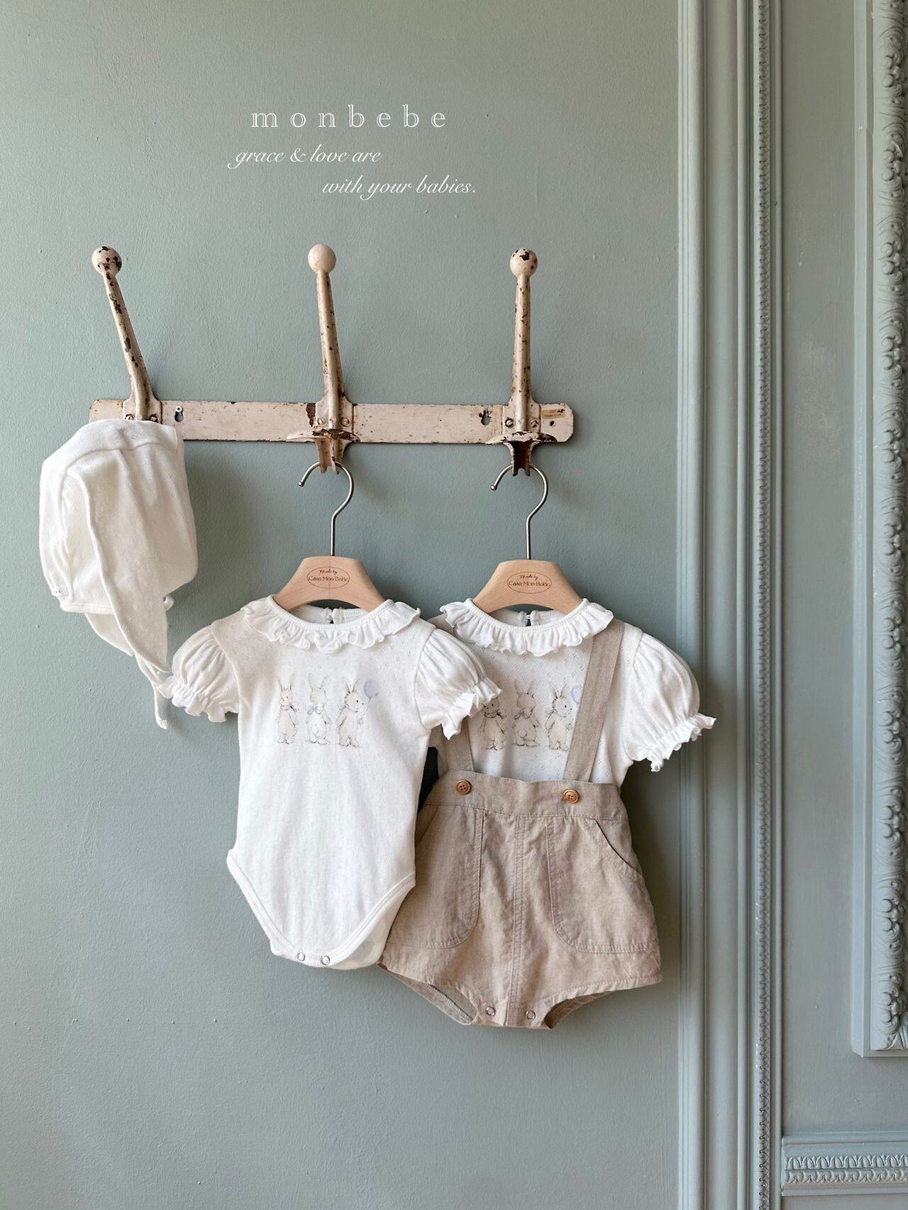 【予約❤︎送料無料】monbebe / Rabbit Eyelet Suit (Bunny Bonnet Set)